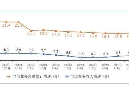 电信业务量收均实现小幅提升。1—10月份,电信业务收入累计完...
