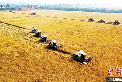 稻谷香里说丰年,听取机声一片。近日,湖北咸宁向阳湖现代农...
