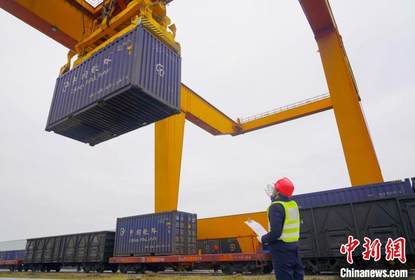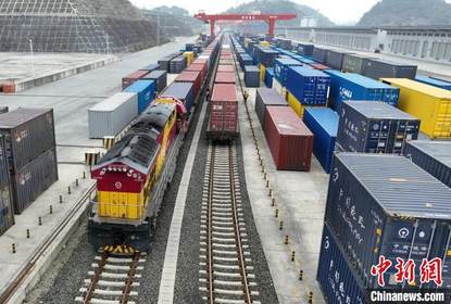满载着4万余件小家电的中欧班列X9132次列车,从南宁国际铁路...