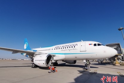 伴随蒙古航空(AeroMongolia)M0811航班平稳落地,天津滨海机...