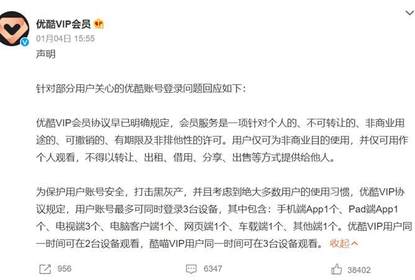 近日,“优酷更改会员登录规则”登上微博热搜。有网友称,用户...