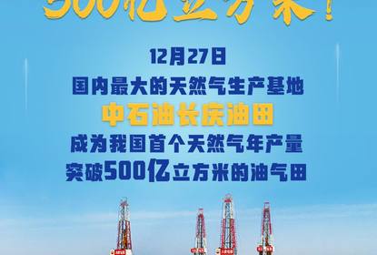 中国石油长庆油田年产天然气产量达到500.6亿立方米,标志着...