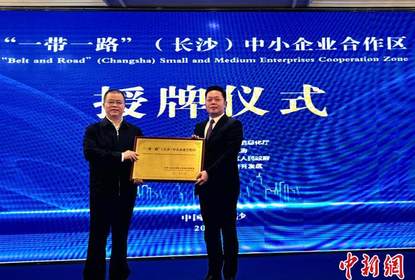 “一带一路”(长沙)中小企业合作区在湖南长沙举行授牌仪式。这...