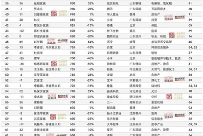“2022胡润百富榜”。1305位个人财富50亿元人民币以上的企业家...
