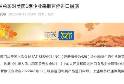 据“海关发布”微信公众号11日消息,海关部门从美国KINGMEATSERVIC...