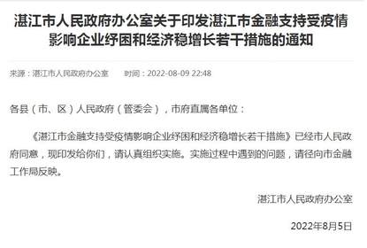 广东省湛江市人民政府网站9日发布《关于印发湛江市金融支持...
