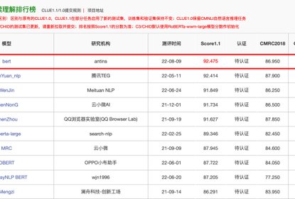 在中文语言理解领域最为权威的CLUE榜单中,蚂蚁集团保险科技...