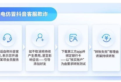抖音发布“关于近期冒充‘抖音客服’诈骗的提醒”,表示近期有诈...