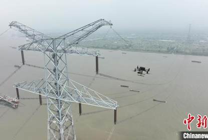 在长江江阴段上空346米处,一架四翼无人机正自南向北地缓缓...