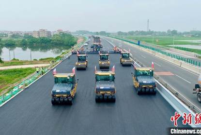 广东省交通集团所属茂湛高速改扩建路面施工现场一片热火朝天...