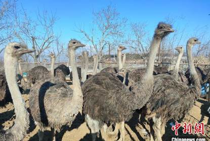 寒冬时节,走进山西柳林县郭家沟村的鸵鸟养殖家庭农场,只见...