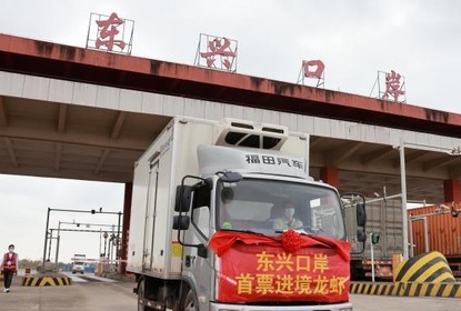 广西东兴公路口岸(北仑河二桥)首票进境龙虾通关,这是东兴公...