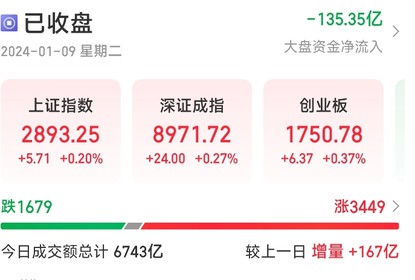 上证指数涨0.20%,报2893.25点;深证成指涨0.27%,报8971.72...