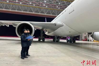 一架由泰国进口的空客A340-600飞机平稳降落在太原武宿国际机...