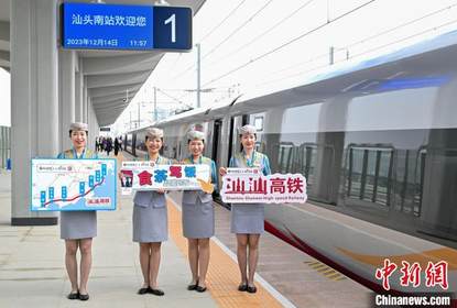 一列从汕头南站出发的高铁试运行列车缓缓驶入汕尾站内。记者...