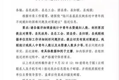 近日,网传一份广西玉林陆川县的通知显示,陆川县要求各镇以及县
