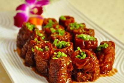 一、九转大肠 九转大肠原名红烧大肠,是一道传统的鲁菜,成菜