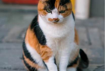 三花猫 三花猫就是身上有黑、红(橘)和白三种颜色的猫,故名