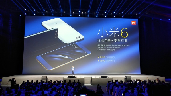 今日小米在北京发布了全新的年度旗舰小米6,雷军多次强调了小米在工艺上的突破,也表示小米6是小米7年来最优秀的手机。小米6中国区首发高通骁龙835芯片,发布会上给出的跑分数据超过18万,同时小米6还配置了LPDDR4x双通道64位6GB大内存。售价方面,小米6 6+64GB版本售价定为2499,6+128GB版本售价2899元。而陶瓷尊享版小米6售价为2999元。同时4月28日10点小米6线上线下首发。