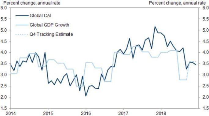高盛称,鉴于以上积极因素的作用,预计2019年全球经济增速为3.5%。得出这样预测的依据主要是,美国经济可能会有较平稳的放缓,而新兴市场则保持较高增速。