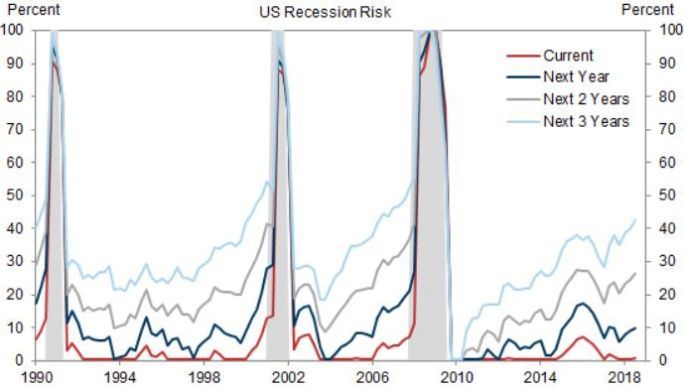 高盛的衰退模型仍然表明,未来一年经济下滑的可能性相当低,大致会保持在近2-3年的历史平均水平。