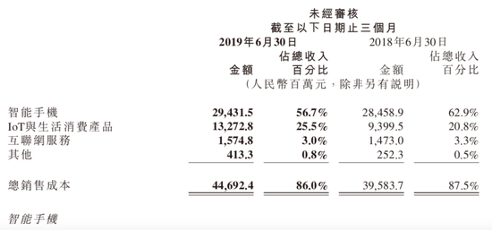 从上半年财务数据来看,第二季度小米智能手机营收占比61.6%,同比下滑5.8%。IoT与生活服务占比28.8%,同比上升5.9%,互联网服务占比8.8%,同比持平。