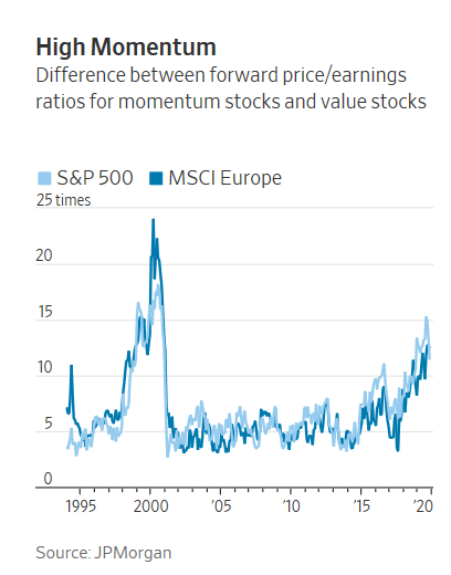 9月初以来,美国股市出现了一个过去10年大部分时间很少出现的现象:与过去备受市场追捧的成长型股票相比,价值型股票出现了上涨。