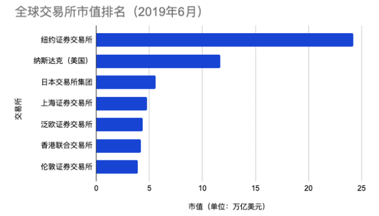 港交所在股票市场总市值也掉了队,截止到2020年1月2日,港交所内股票总市值排名第六,不及上交所。