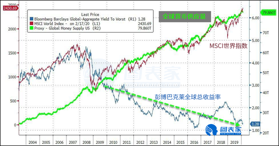 德意志银行的数据显示,全球股市在2019年总资本增加了17万亿美元,这与各国央行每月增加数千亿美元的流动性高度相关。随着欧央行、日本央行、中国央行和美联储每月向市场注入数千亿美元资金,全球股市摆脱了糟糕的宏观经济、疲弱的盈利和政治风险。