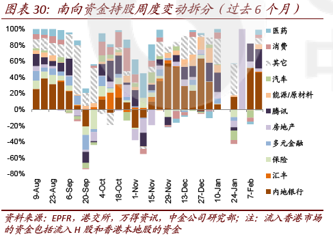 南向流入放缓:本周一至周四互联互通南向日均净买入18亿港币(vs. 上周日均净买入42亿港币)。行业层面,南向资金主要买入内地银行和腾讯(00700)