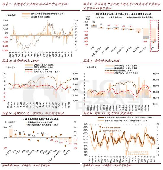 本周全球资金面值得关注的变化是:1)继上周流入后,EPFR数据显示本周海外资金再度转为流出“H股+中概股”。2)互联互通北向资金流入本周有所回升,而南向资金流入放缓,两者规模接近。3)全球来看,本周全球股市流入放缓,其中美股流入规模较上周进一步放缓,而新兴市场转为流出。
