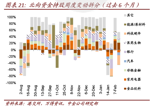 ►互联互通资金:北向资金流入回升:本周一至周四互联互通北向日均净买入录得19亿人民币(vs. 上周日均净买入9亿人民币)。行业层面,北向资金本周主要买入食品饮料和非银金融,卖出科技硬件和汽车。