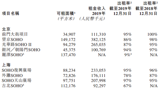 而除去刚开业的丽泽SOHO,出租率最低的为今年2月开业的古北SOHO,出租率仅为67%。