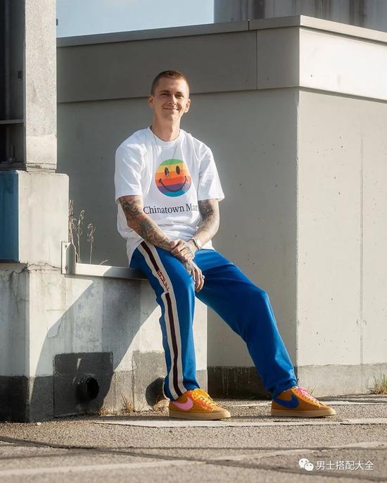 橘色最近两年的爆火,让喜欢走在潮流前线的男生感到眼前一亮。橘色好搭配的属性,与很多颜色都很合拍。下身选择一条运动裤搭配老爹鞋,轻轻松松玩转街头风。