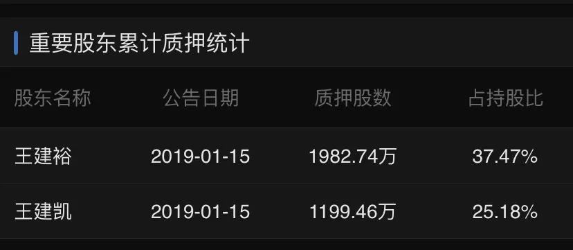 东方财富(17.640, 0.00, 0.00%)网数据显示,截至2019年1月15日,王建裕有1982万股公司股票处于质押状态,占其持股比约37.4%。