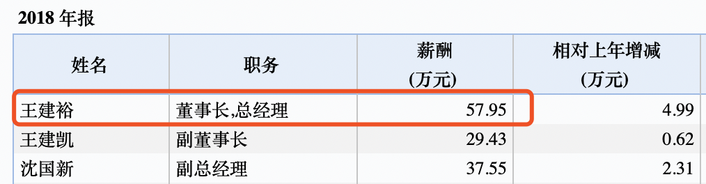 中电电机2018年报显示,当时还担任董事长的王建裕年薪近58万元。