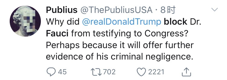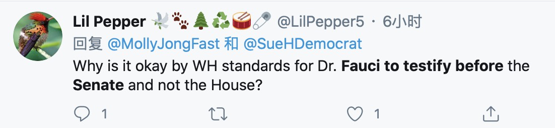 还有的网友表示,拒绝让福奇参加众议院听证会,是特朗普政府在掩盖事实。