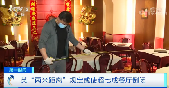 英国伦敦某中餐厅负责人 赛奇:按我们目前的情况看,必须保证两米安全社交距离意味着我们肯定要去掉三分之二的座位,只保留三分之一才能够按英国政府的标准执行。