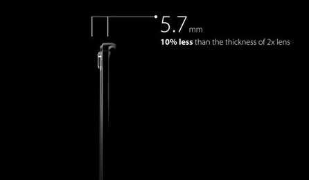这一整套系统模组的厚度仅为5.7mm,比普通2倍光学变焦模组的厚度还薄了10%,因此不用太担心镜头突出问题。