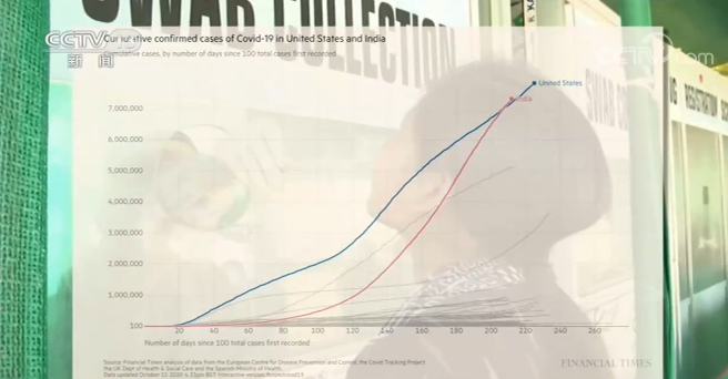 根据世卫组织10月15日公布的数据,过去7天,印度的新增确诊病例数达到47万,超过了美国的35万,居世界第一。