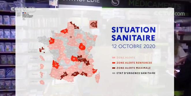根据法国卫生部门发布的疫情地图,全法已有三分之二的地区属于新冠病毒传播活跃的“红色区域”,巴黎、马赛等大城市已进入疫情最高警戒状态。