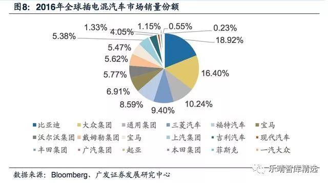 2016年,比亚迪、大众、通用、三菱、福特插电混销量排名前五位。