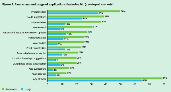 ▲与机器学习相关手机应用的消费者调查