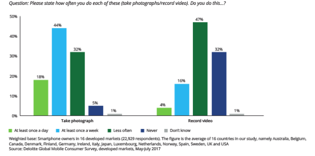 ▲使用智能手机拍照和摄像功能的频率调查