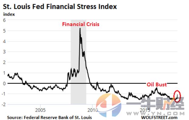 据【一牛财经】(www.yn.com)此前多次提及,金融压力指数(The Financial Stress Index )旨在显示“正常”的金融状况的零水平。当金融压力低于正常水平时,指数为负。当金融状况比正常情况更为紧张时,该指数将转为正值。