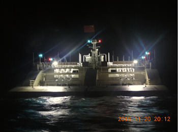 万山号在浪高小于0.5m下间断发电,从2015年11月20日投放到11月30日已累积发电2300度,日发电量230度。