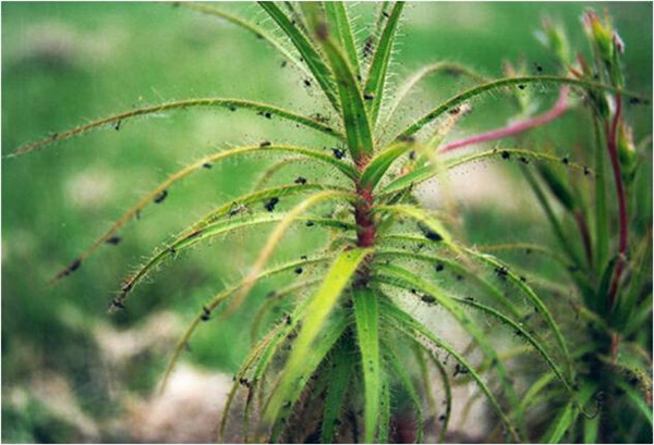 其实,食虫植物与被捕食昆虫之间的关系往往比较复杂,很多仍有待研究,更有许多让严谨的科学家们着迷且争论不休的有趣现象。例如有些瓶子草,不少科学家认为它们与被捕捉的昆虫竟然是一种互利关系:瓶子草长期为一些昆虫提供在沼泽中稀有且高效的能量饮料——蜜汁,而整个昆虫种群付出的代价仅仅是牺牲了少量个体,为瓶子草提供了氮的来源,但是双方彼此提供了所需的紧俏货物,这场貌似凶险的捕杀实际上却是一场双赢!