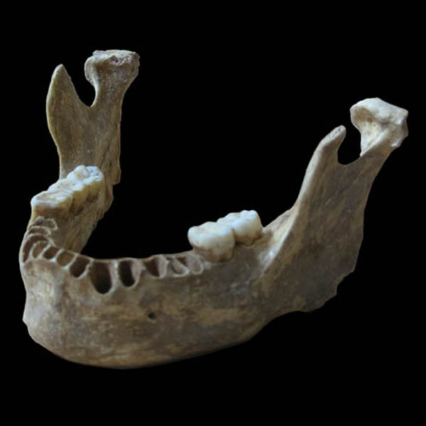 图1 罗马尼亚洞穴中的一早期现代人下颌骨Oase1,碳十四直接测年的校正年代距今约3.7万年-4.2万年,是目前欧洲最早的有直接测年的早期现代人(付巧妹供图)