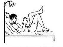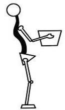 此外,即使我们并没有负重,但是由于姿势不正确,也可能造成脊柱的损伤。这时,虽然脊柱所承受的力矩很小,但是由于脊柱和肌肉组织是不能承受很长时间的负担,所以即使负重很小若时间过长也会造成脊柱的病变。例如由于躺着的姿势不正确或长时间在电脑前工作,或者长时间蹲着,会造成颈椎和腰椎病变。还例如,曾经小学生长期用单侧背的书包,后来研究发现会导致脊柱歪曲,才普遍改用如现今用的双肩背书包。下面这两幅图,他们的姿势就不正确,会造成颈椎或腰椎病变。因为时间长了,他们的肌肉会松弛,脊柱长时间维持一个姿势就会产生"流变",这是一种不可恢复的变形。有时肌肉长时间紧张还会产生肌肉劳损。所以,在需要较长时间弯腰时,最好把一只胳膊支撑在膝盖上;在需要较长时间做蹲位劳动时(例如人们在擦地板时的情形),这时最好采取爬行在地板上的姿势。这种姿势会使脊柱的负担减小许多。