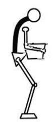 为了避免这种损伤,人们首先要对于所要搬动的重物要衡量一下,是不是一个人搬得动?一定不做超过自己能力的事。其次在搬动时要姿势正确,要使重力对脊柱所形成的力矩尽量小。也就是说让重力作用线与脊柱的轴线距离尽量小,这相当于减小图2中的l。下面图6的四幅图中左边两幅的姿势是正确的,而右边的两幅是不正确的,因为后者的l相对要大许多。注意左下边的那幅,那个人让重物靠在腹部,重物对脊柱的力矩就会减小到最小的程度。在文革中许多知识分子被下放到农村做体力劳动,由于不熟悉这些劳动中的窍门,所以很多人用力不当,得了这种腰腿疼的病。